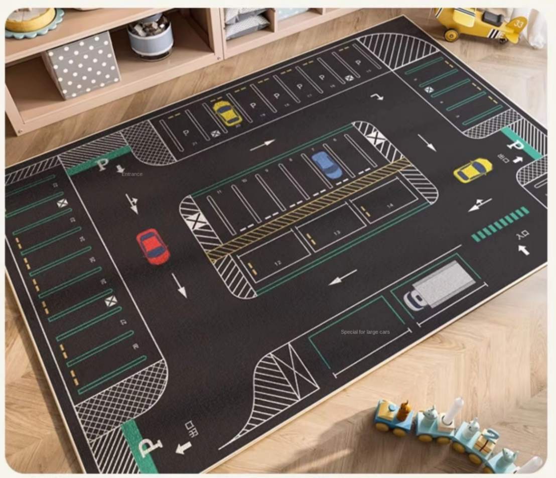 Se o seu pequeno ama carrinhos, o Tapete Infantil Garagem de Carro Preto é o cenário ideal para criar histórias cheias de movimento e criatividade. Com estampa inspirada em estacionamento urbano, vagas numeradas e sinalizações, ele convida a criança a organizar, imaginar e explorar novas aventuras todos os dias.